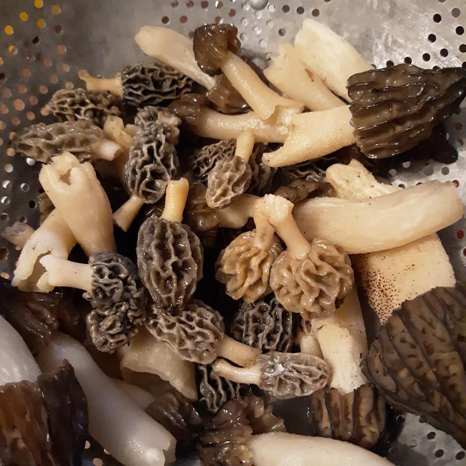 - 2 cups fresh morel mushrooms or store bought shiitake/button mushrooms ((if dried, rehydrated and drained; reserve liquid to swap for up to half of the vegetable broth))
