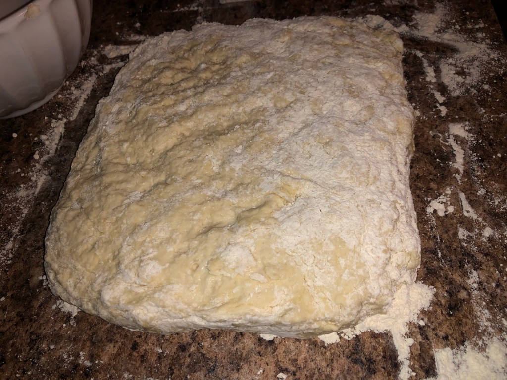 Scrape the dough onto the countertop and pat or roll to 3/4 inch thickness.
