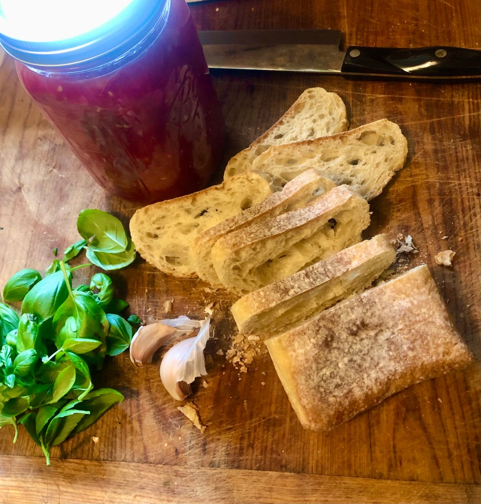 Pappa al pomodoro is one of the staples of cucina povera. Some stale bread, onions, garlic, tomatoes, herbs, stock/water, and olive oil transform into a silky bowl of hearty soup that tastes a lot like a summer day.