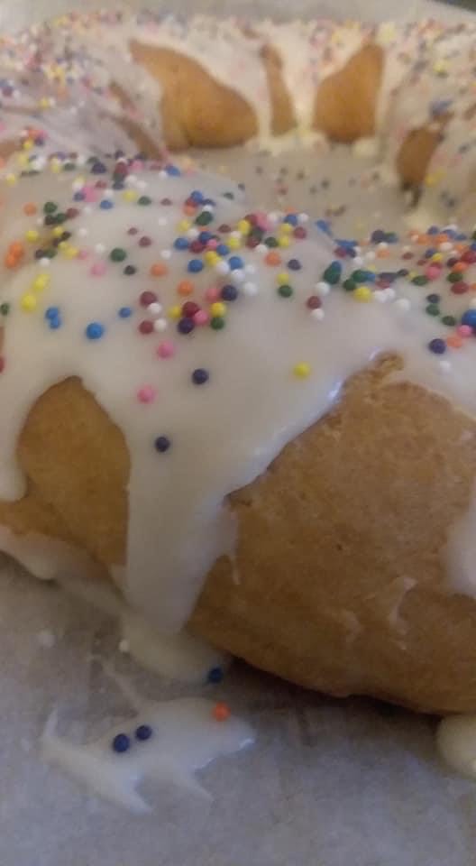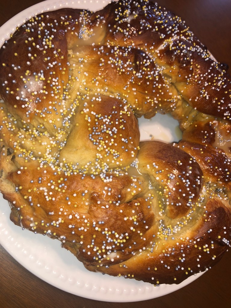 I’ve mentioned before that I’m the child of an Italian immigrant. One of the traditions that my family brought from Italy is pane di Pasqua, or Easter bread. Flavored with anise, this traditionally eggy bread has a dense, dry crumb and is not too sweet… but it’s delicious. My aunts would braid dyed eggs into the loaf before baking, which I always considered a perfectly good waste of the bread parts because who would want to peel delicious bread off of an egg? I sure didn’t! Things my 8-year-old brain struggled to understand.