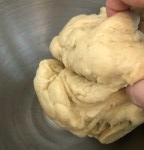 Mix on medium for 5 minutes, checking after 2 minutes. The sides of the bowl should be clean. If they are not, add remaining flour 2 Tbsp at a time, mixing for 1 minute after each addition. At the end of 5 minutes, the dough should be slightly tacky and the sides of the bowl should be clean but the dough can be stuck to the very bottom of the bowl.