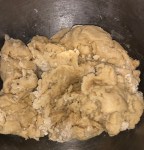 With the mixer on low, slowly add the flour, ½ cup at a time alternating with the butter until everything is incorporated.