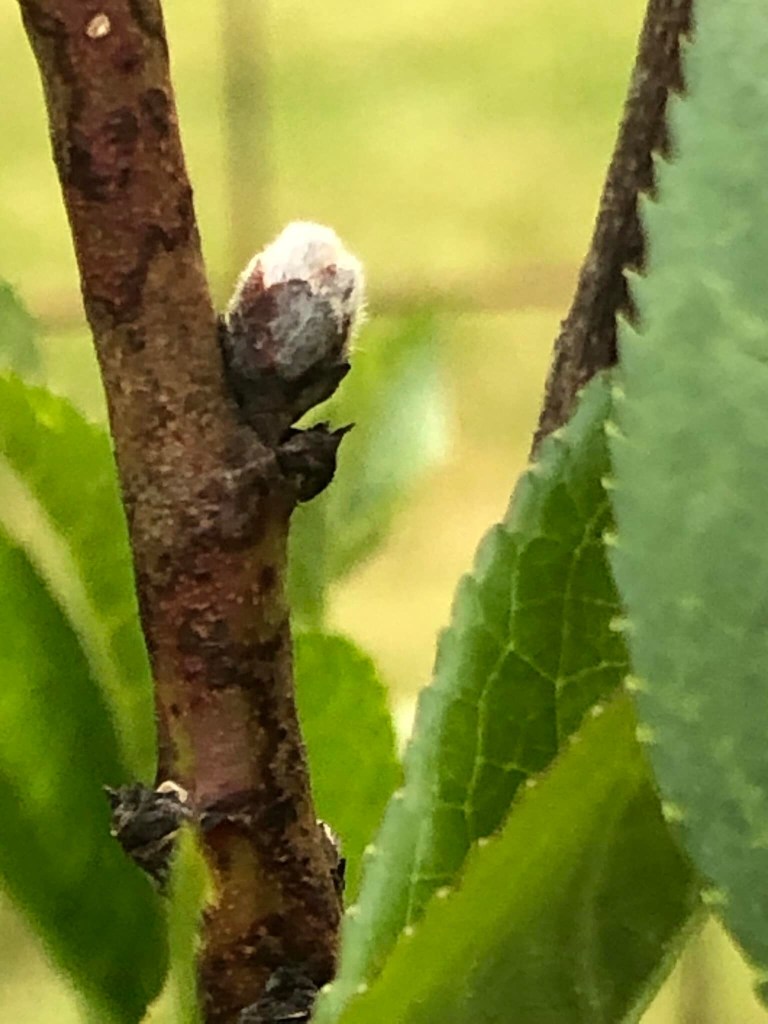 Fruit has set on the peach tree just in time for the evening temps to hit 20 degrees a couple of weeks ago, which in orchard talk is a 100% crop failure (25 degrees F is about a 90% crop failure). G and I ran outside after work, wrapping our still small trees with blankets in the hopes of saving our fruit. The blossoms on the apple trees had just fallen as well, so they were snugly contained.